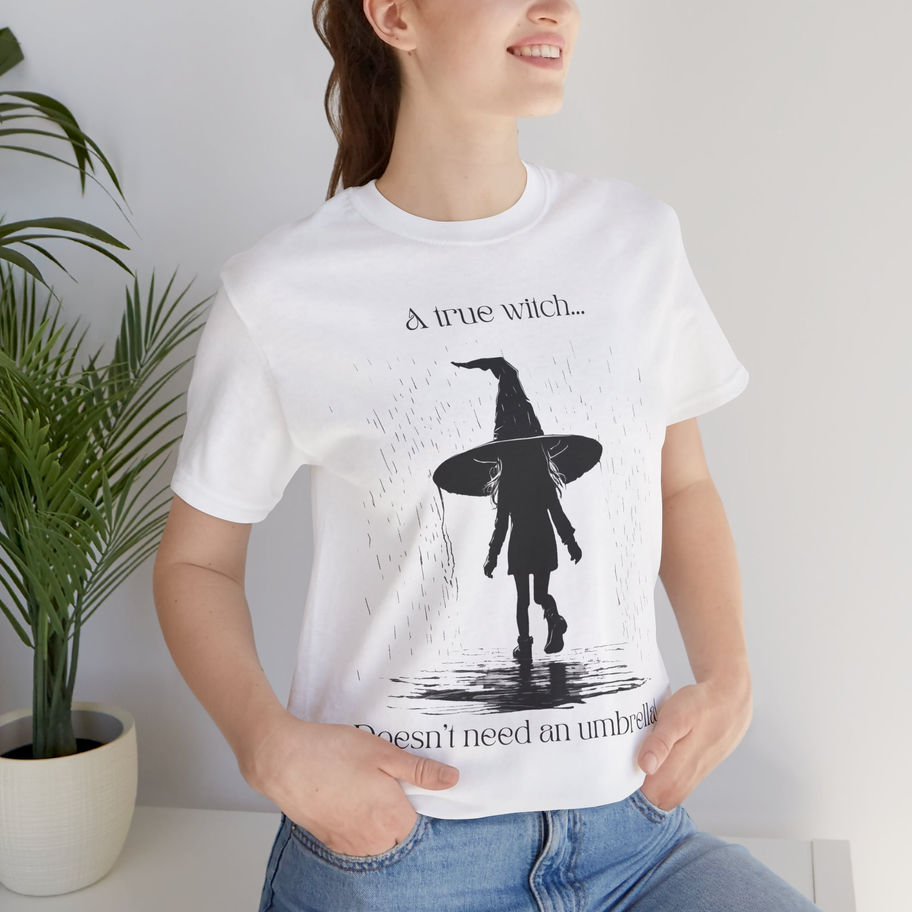 "A True Witch Doesn't Need an Umbrella!" 100% Cotton Tee